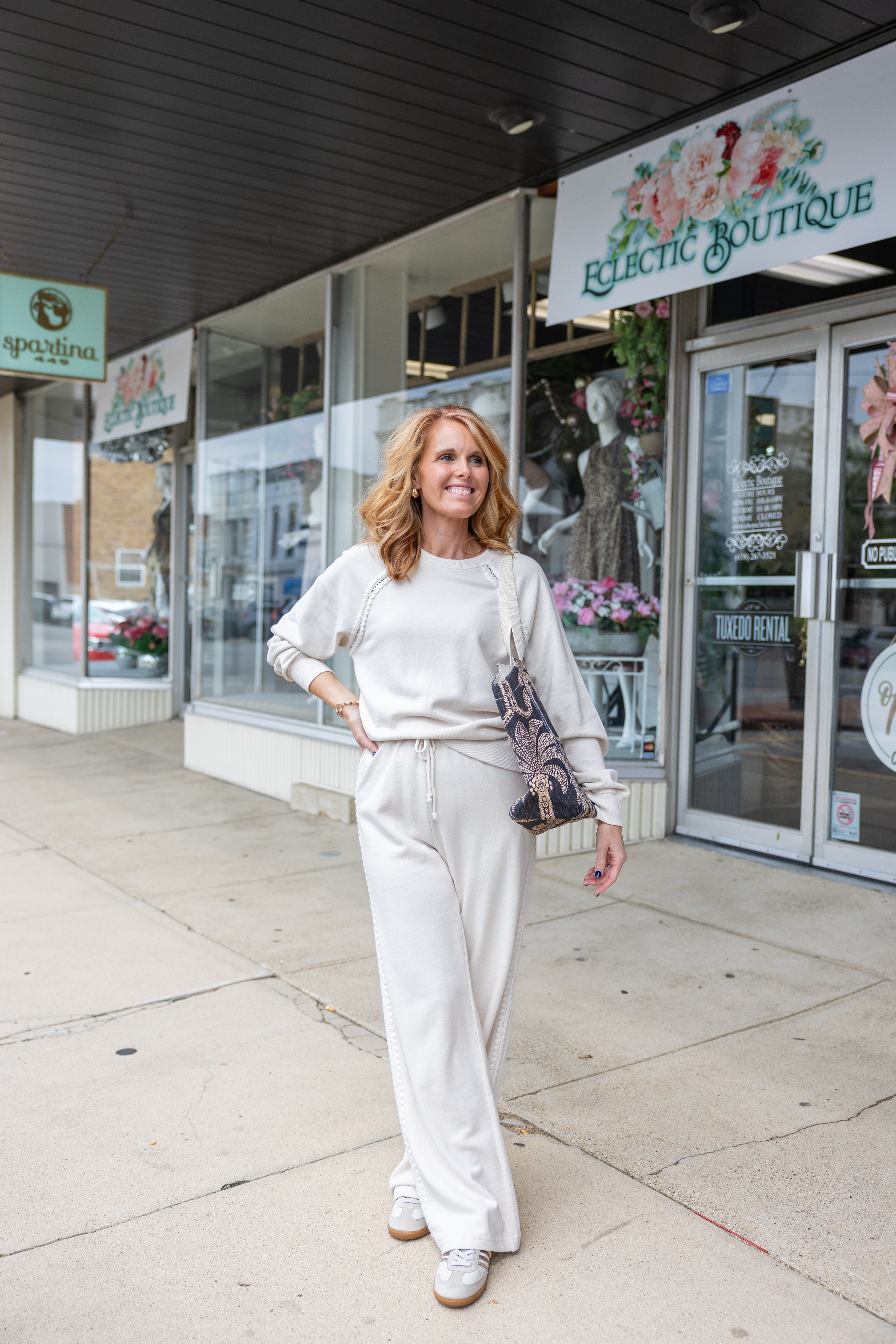 Easygoing with a twist. These cotton French terry wide-legs feature a comfy drawstring waist and delicate crochet trim at the sides for a soft-meets-feminine moment.