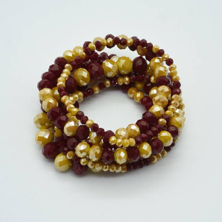 Maroon & Gold Chunky Beaded Bracelet Stack