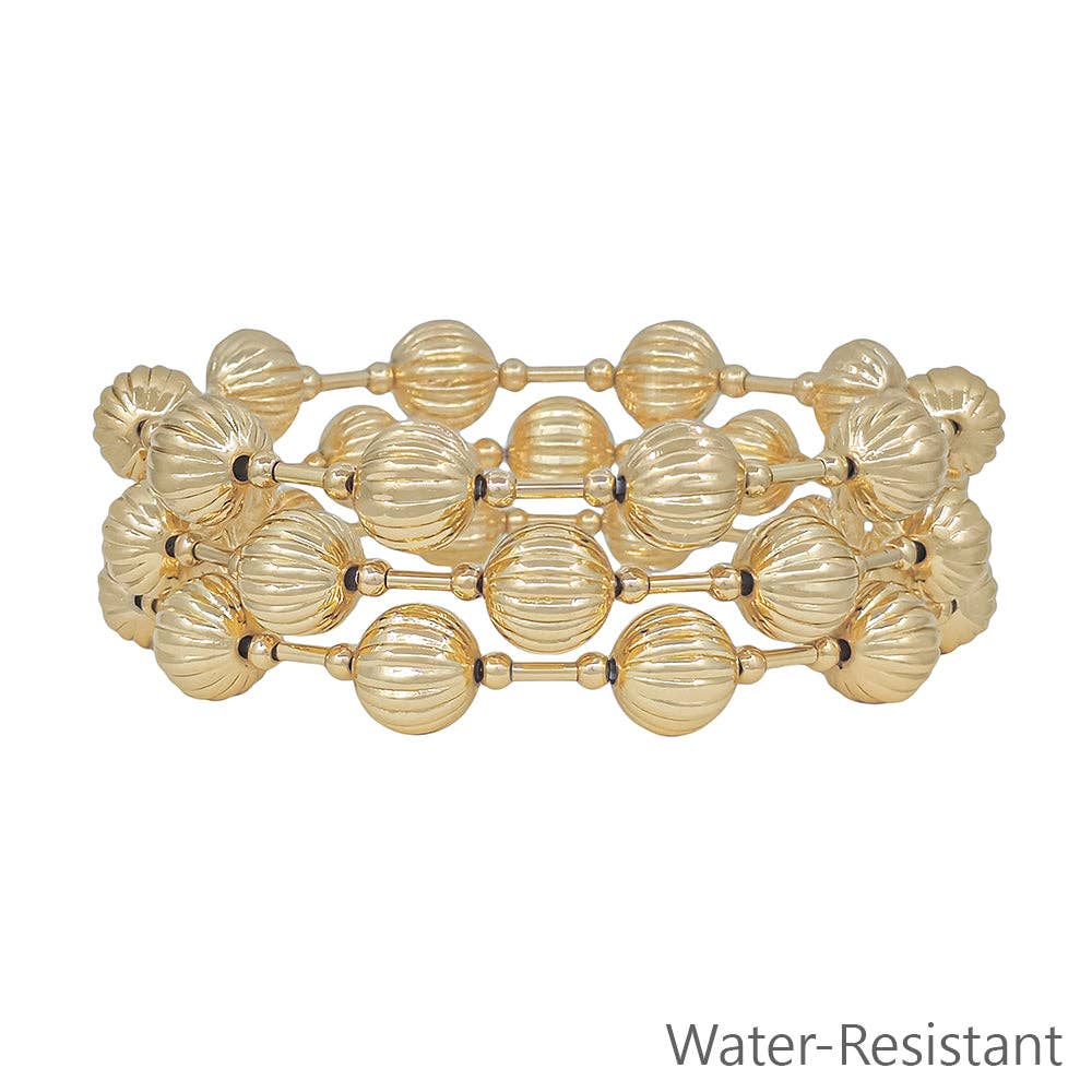 Set of 3 10MM Gold Textured Beaded Stretch Bracelets