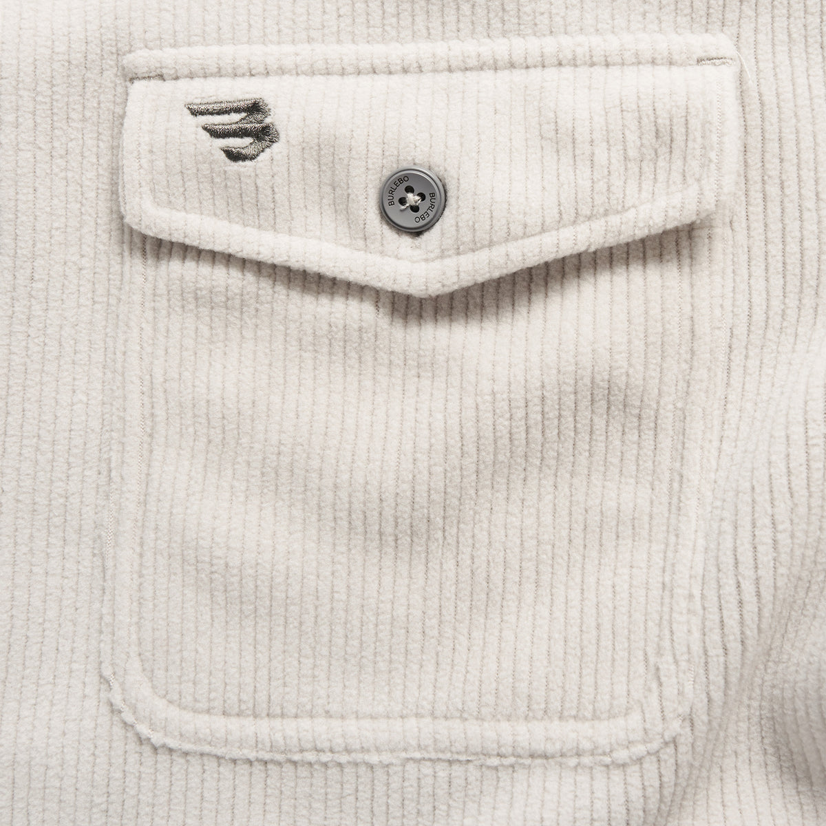 Heavyweight Outerwear crafted with super soft ribbed fleece for maximum comfort and warmth. The interior is brushed and detailed with contrast patterns, combining function and style. Features include a front pocket with button closure, buttoned sleeve cuffs, and adjustable cuffs for a personalized fit.