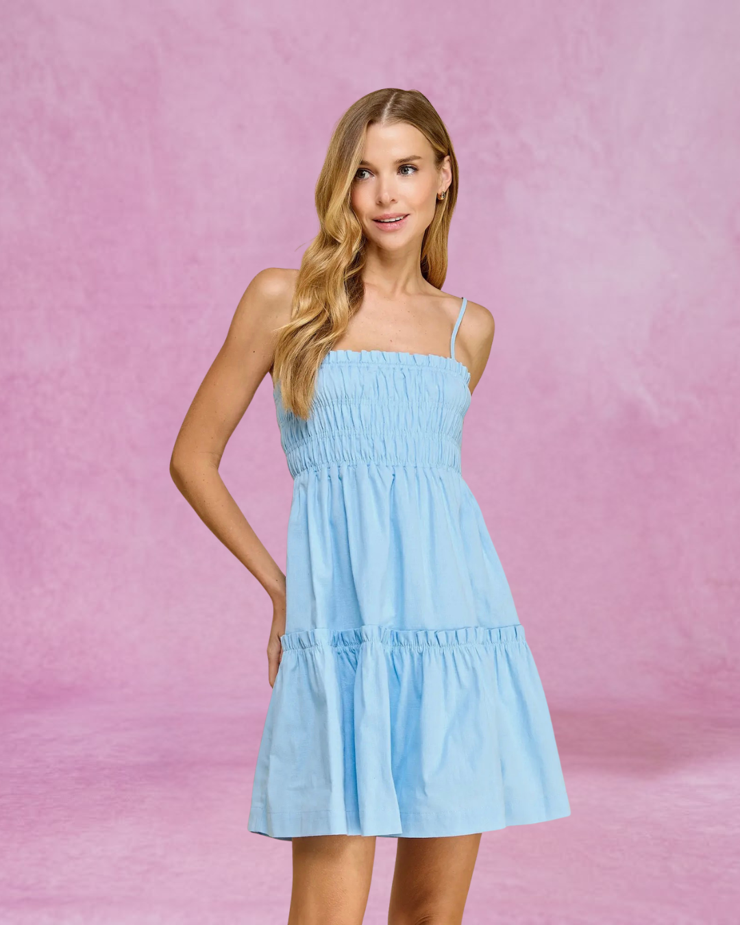 Baby Blue Spaghetti Strap Ruffle Trim Dress