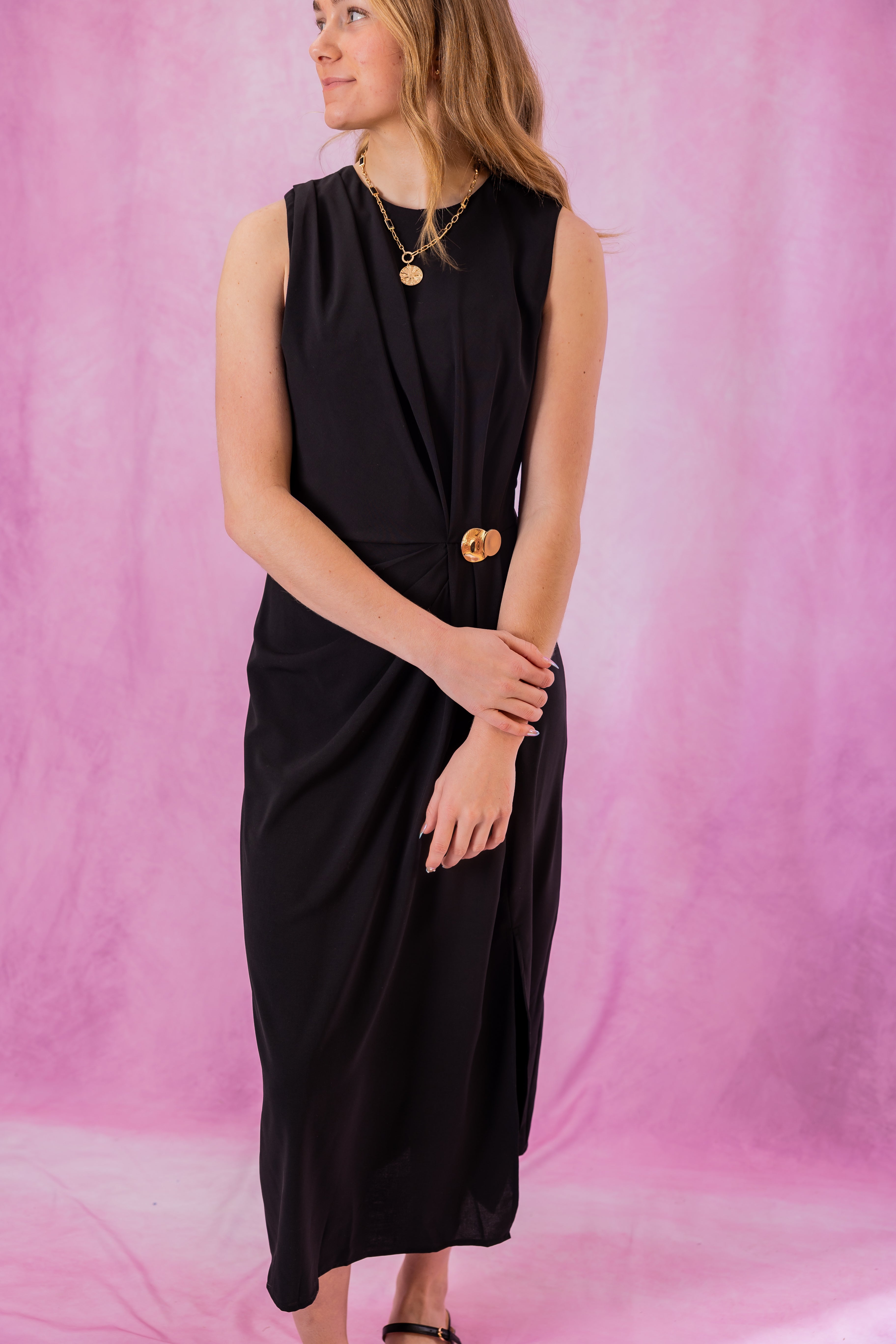 Effortless elegance meets versatile style with this black sleeveless midi dress. The timeless silhouette flatters every figure while the midi length offers sophisticated coverage for any occasion—from office events to evening gatherings. Pair it with heels for formal affairs or sneakers for casual outings. The sleeveless design keeps you cool and comfortable, while the classic black hue ensures it coordinates seamlessly with your existing wardrobe. A wardrobe essential that transitions beautifully from season to season.