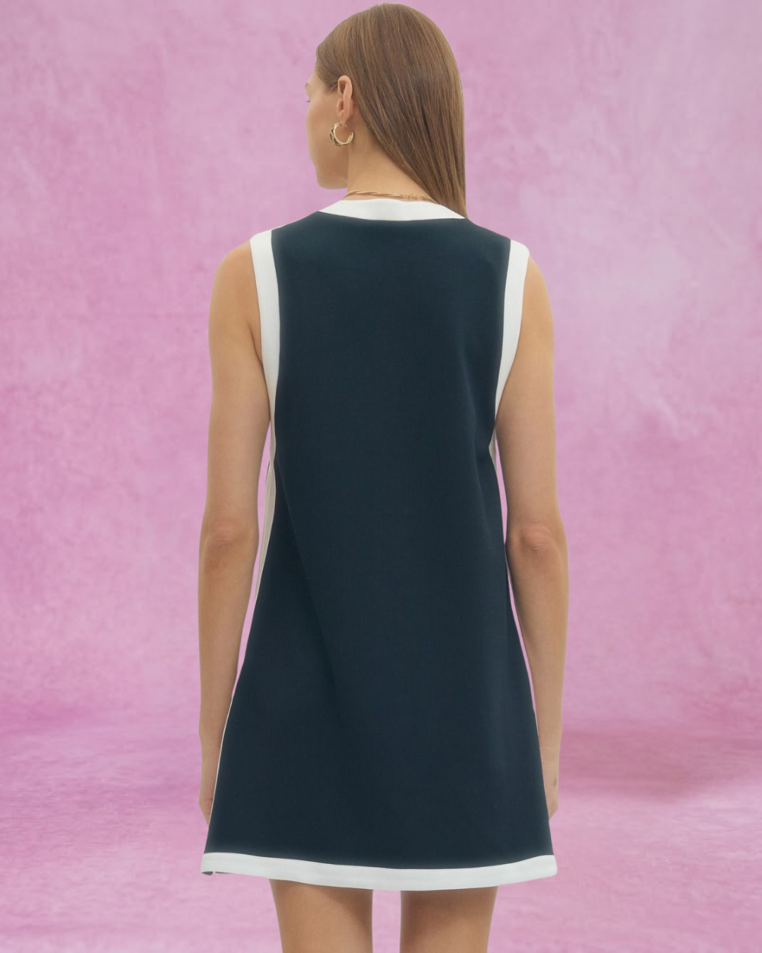 Navy Sleeveless Pullover Mini Dress Effortless elegance in a timeless navy silhouette. This sleeveless pullover mini dress features a relaxed fit that transitions seamlessly from casual daytime wear to evening occasions. The streamlined design pairs beautifully with layered jewelry, strappy heels, or minimalist sneakers. Perfect for building a versatile wardrobe staple that works across seasons and settings.