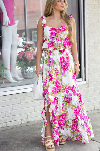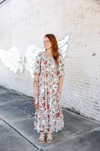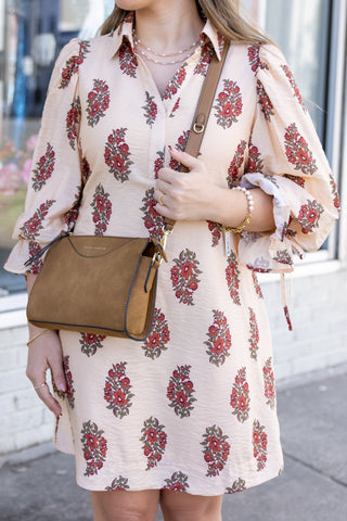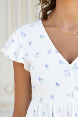 *FINAL SALE* White/Blue Floral Ruffle Sleeve Mini Dress