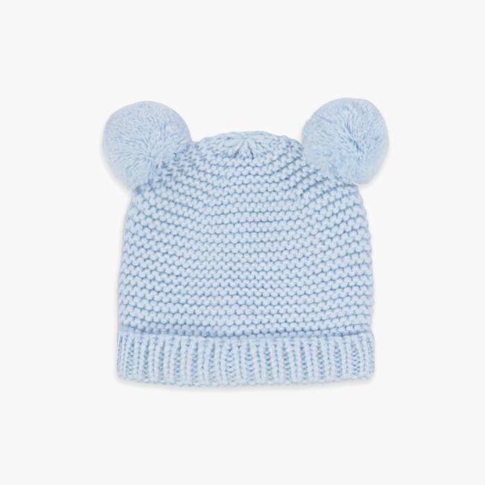 In a lovely blue hue, this set is made from a soft and cozy knitted fabric with a beautifully soft cotton lining. Finished with super cute bobble detailing, this matching set is sure to keep baby bundled in joy.