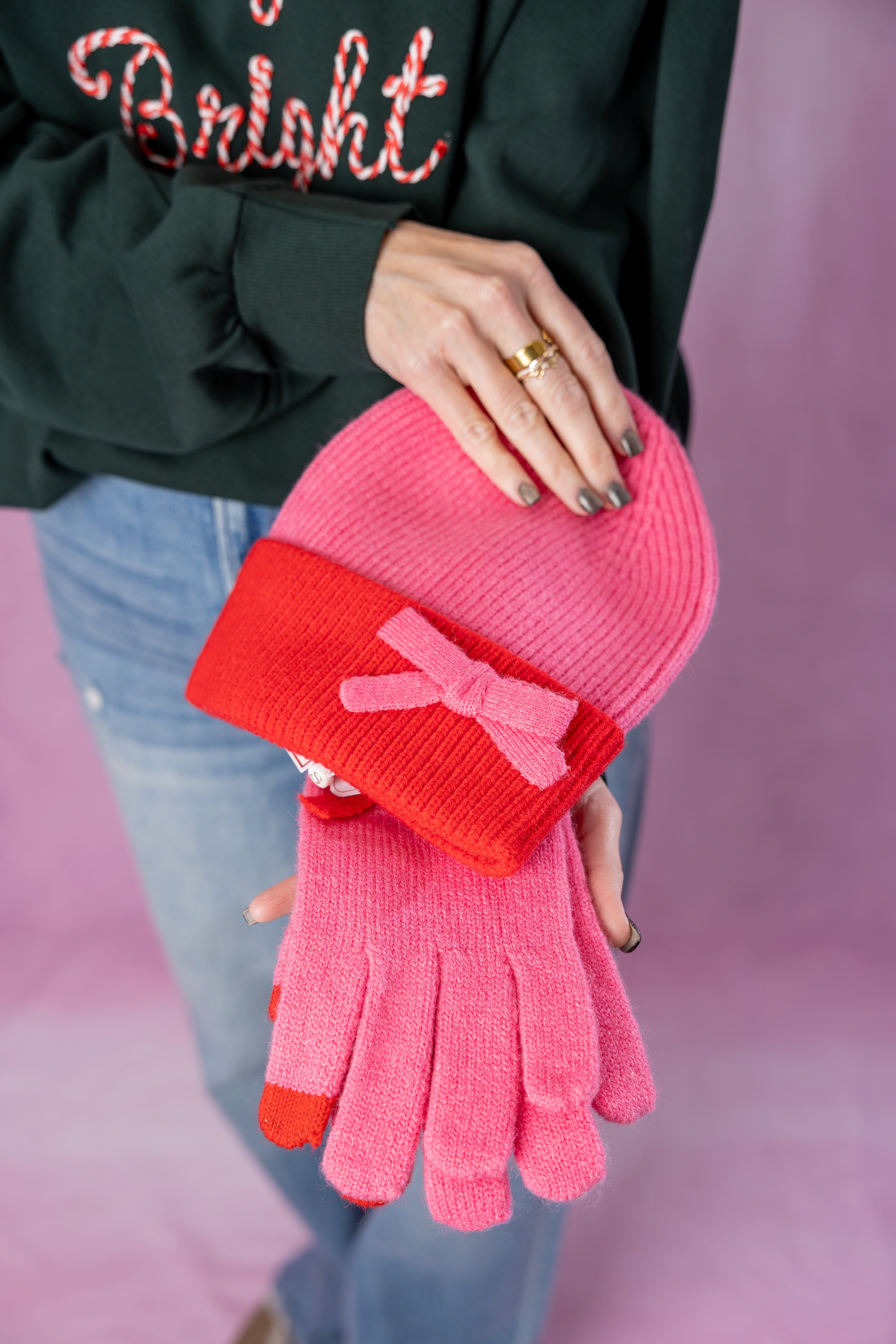 Pink/Red Bow Beanie
