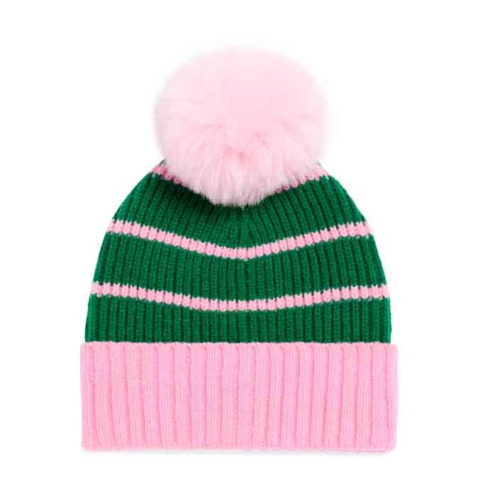 One Size, Made from acrylic, nylon, polyester, and wool, Top off your winter look with the Allison Beanie, a colorful knit hat that’s full of charm. Featuring bold stripes, a chunky ribbed cuff, and an oversized top pom, this beanie adds a fun twist to any cold-weather outfit. The soft knit keeps you warm and cozy, while the playful palette keeps your vibe bright even on gray days. Whether you're bundling up or just heading out for errands, this hat is the cherry on top.
