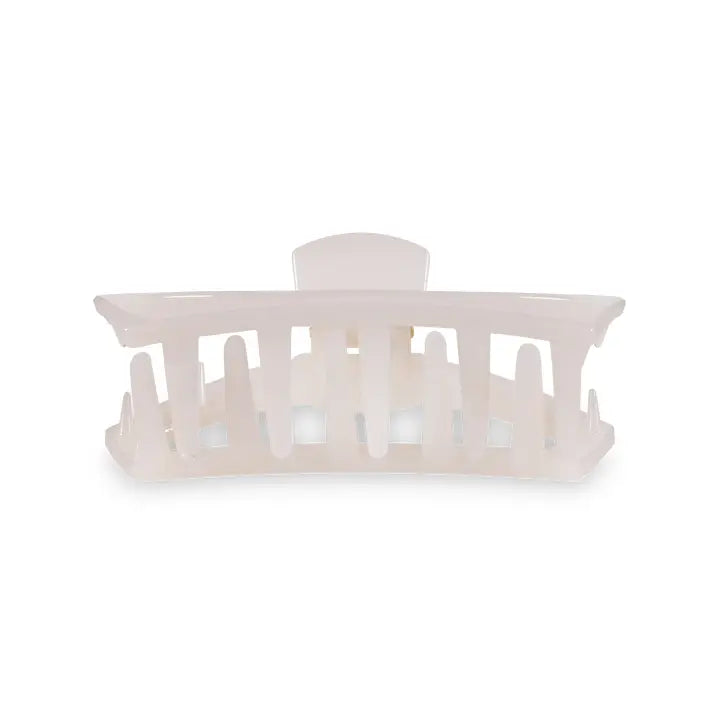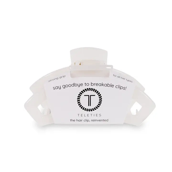 Our Open Hair Clip offers the same incredible advantages as our Classic Claw Clip, but with a unique open-style design that allows your hair to show through. Say goodbye to breakable clips! We have perfected the hair tie and now have re-invented the hair clip. Each clip has bendable teeth that take back to shape, they work on all hair types and have a strong hold. Hold your hair and enhance your style with the new TELETIES Clip! Medium clips are great for thick to medium thickness of hair. The medium clip is 3.73 inches long.