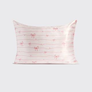Kitsch Holiday Satin Pillowcase in Striped Bows