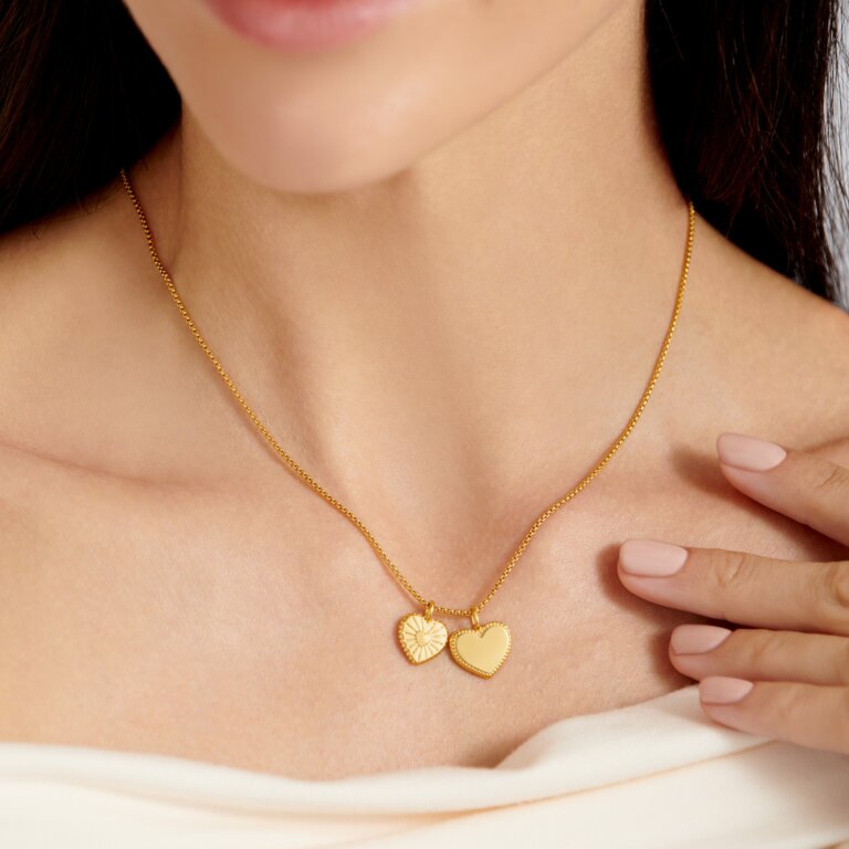 Certified waterproof, our 'Daughter' Waterproof Gold Charm Necklace has been designed in durable 18K Gold PVD Coating - meaning it is waterproof, sweat-proof and life-proof - and holds two heart-shaped charms.