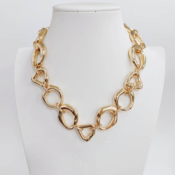 Large Gold Geometric Open Circle 16"-18" Chunky Necklace