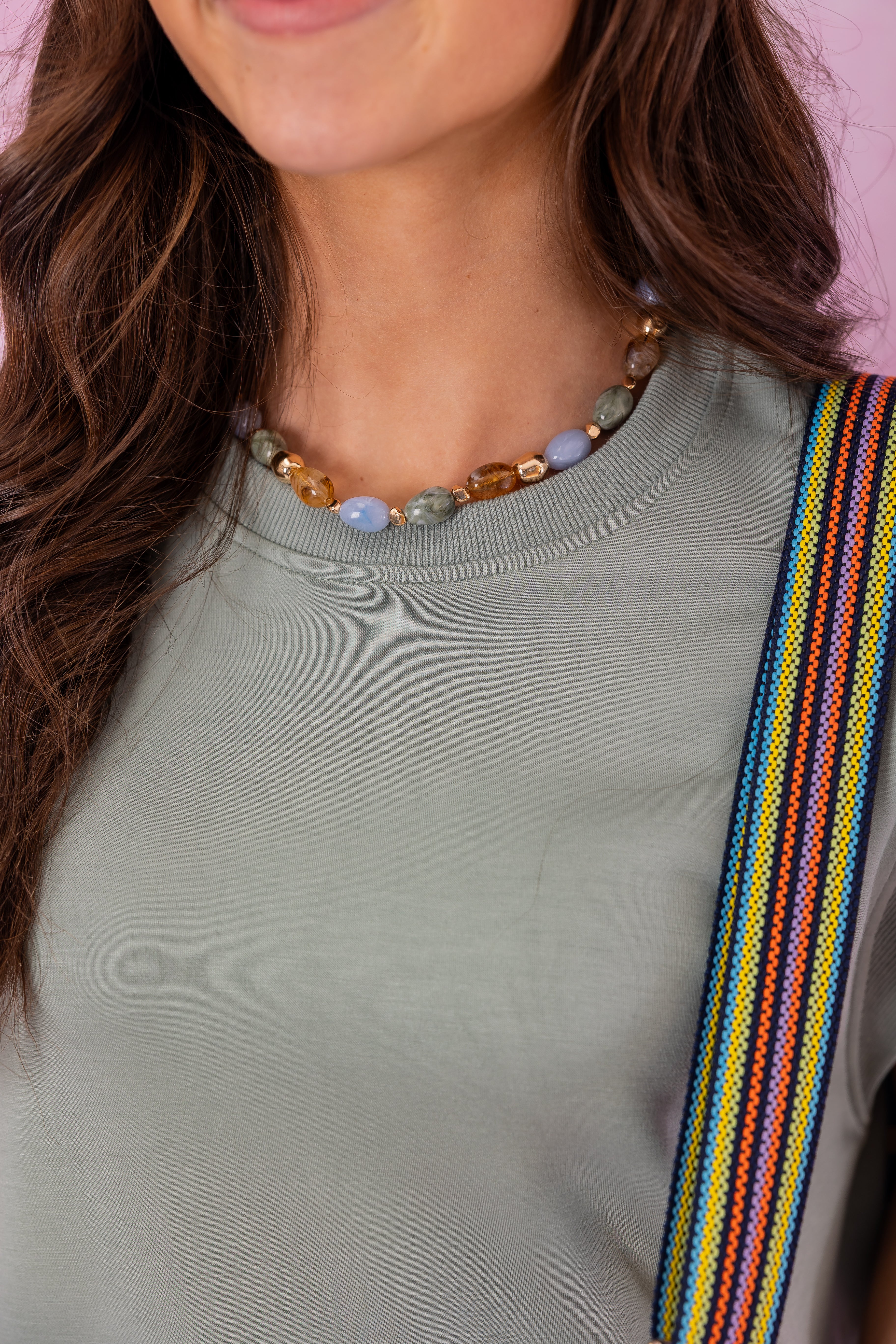 An exquisite piece that encapsulates the latest trends in style, color, and pattern. Meticulously crafted, this necklace features natural stones in soothing hues of light blue and brown, creating a piece that's as fashionable as it is affordable. Perfect for elevating any outfit, this necklace is a testament to our commitment to bringing you the best in fashion jewelry.