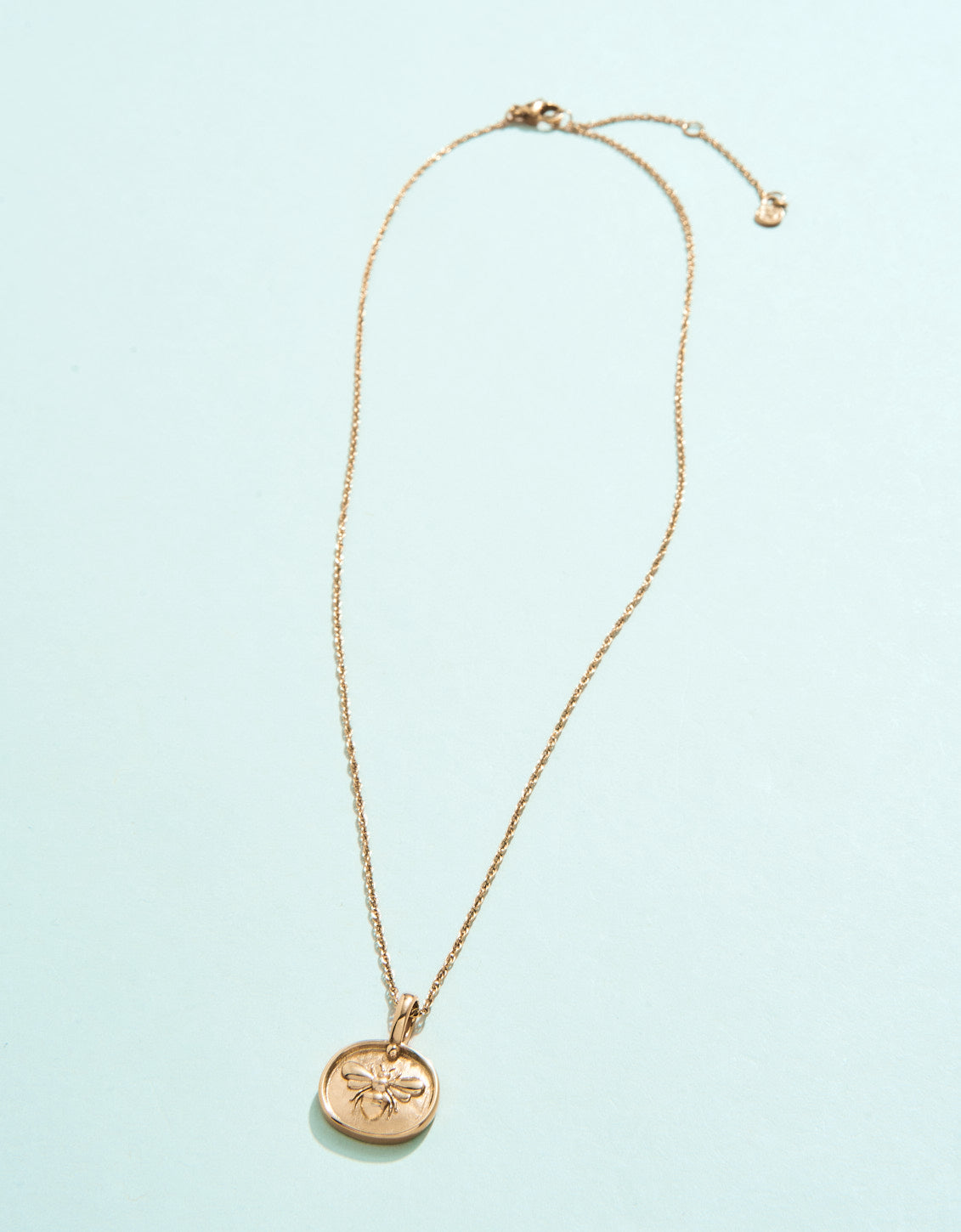 Made of tarnish free, water resistant 14kt shiny gold plating over stainless steel, the Mason Bee Necklace features a warm, golden coin pendant with an embossed bee icon. This is a necklace you will never have to take off, designed to shine through everyday wear, exercise, showers and a summer at the beach.
