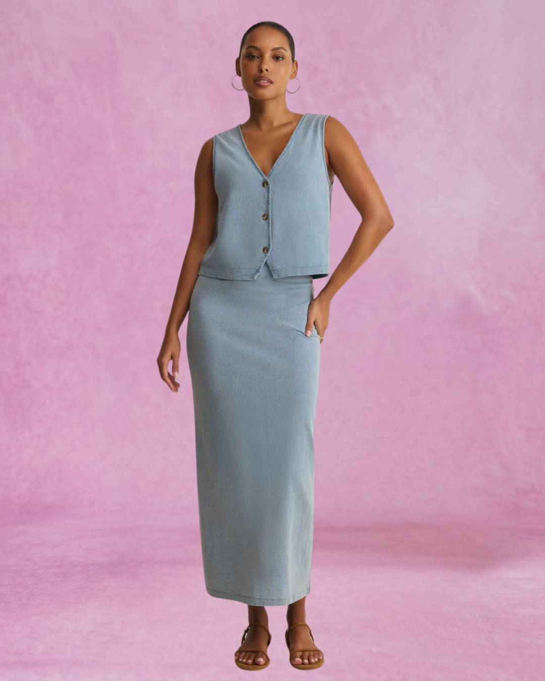 Z Supply Noelle Jersey Denim Top - Ocean Air Indigo