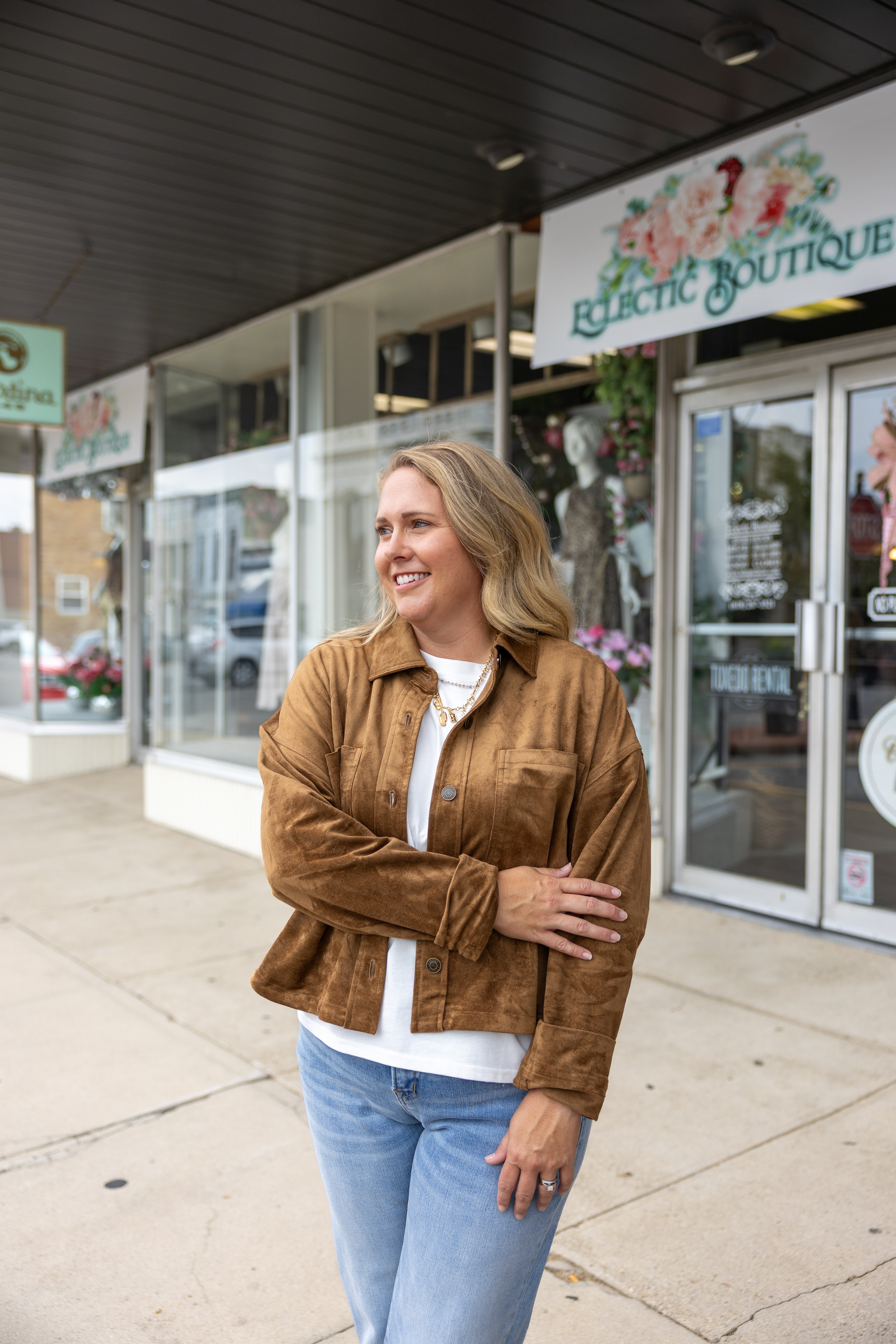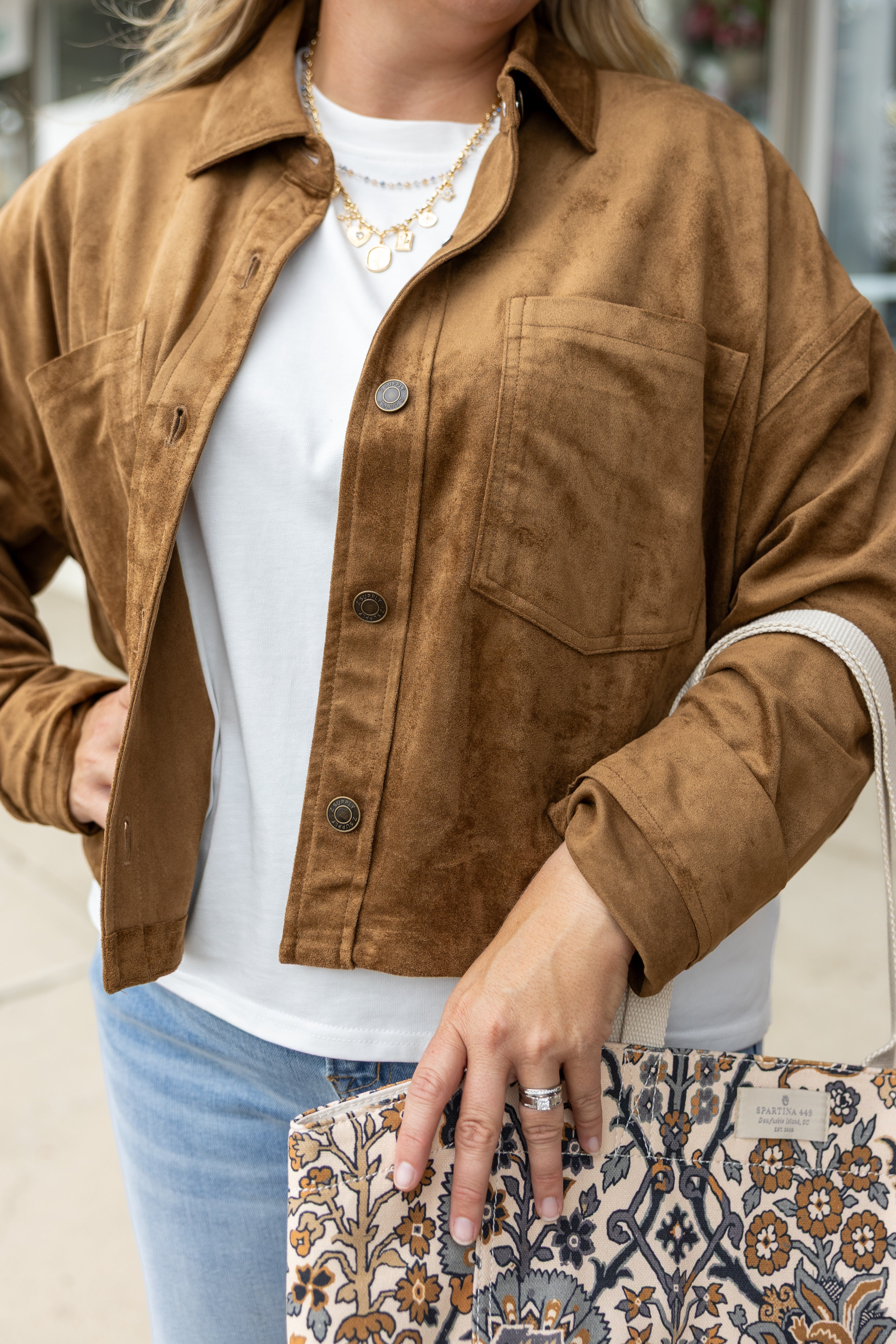 Elevate your style effortlessly with the Z Supply All Day Cropped Suede Jacket in Coconut. This lightweight, soft suede jacket offers a flattering cropped fit that pairs perfectly with any outfit. Its warm, neutral hue adds a sophisticated touch, making it ideal for layering from day to night. Experience comfort and chic versatility all day long with this must-have wardrobe staple.