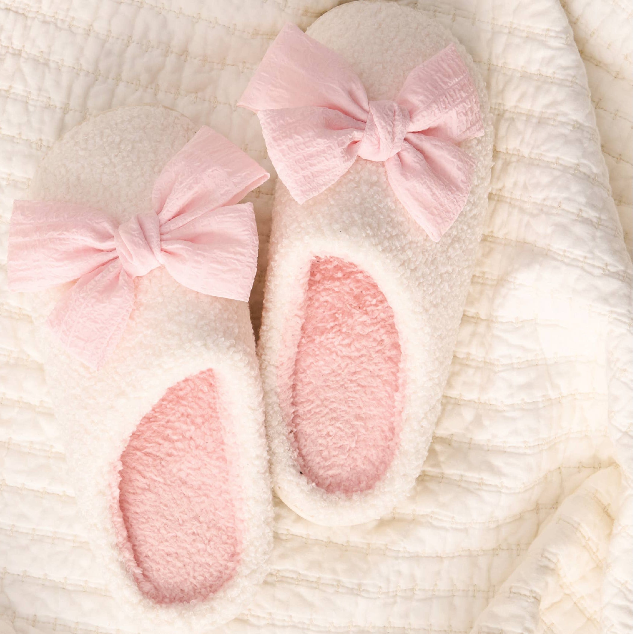 The Darling Effect Fuzzy Slippers – Betty Bow Blush